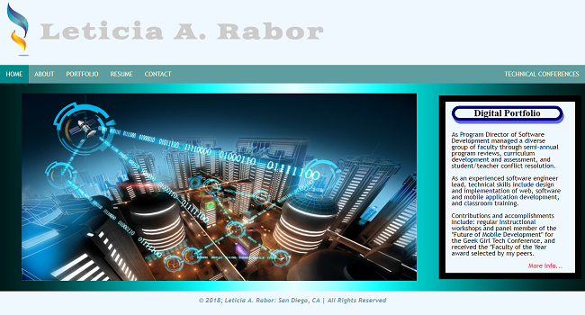 Contributions and accomplishments include: regular instructional workshops and panel member of the "Future of Mobile Development" for the Geek Girl Tech Conference, and received the "Faculty of the Year award selected by my peers.